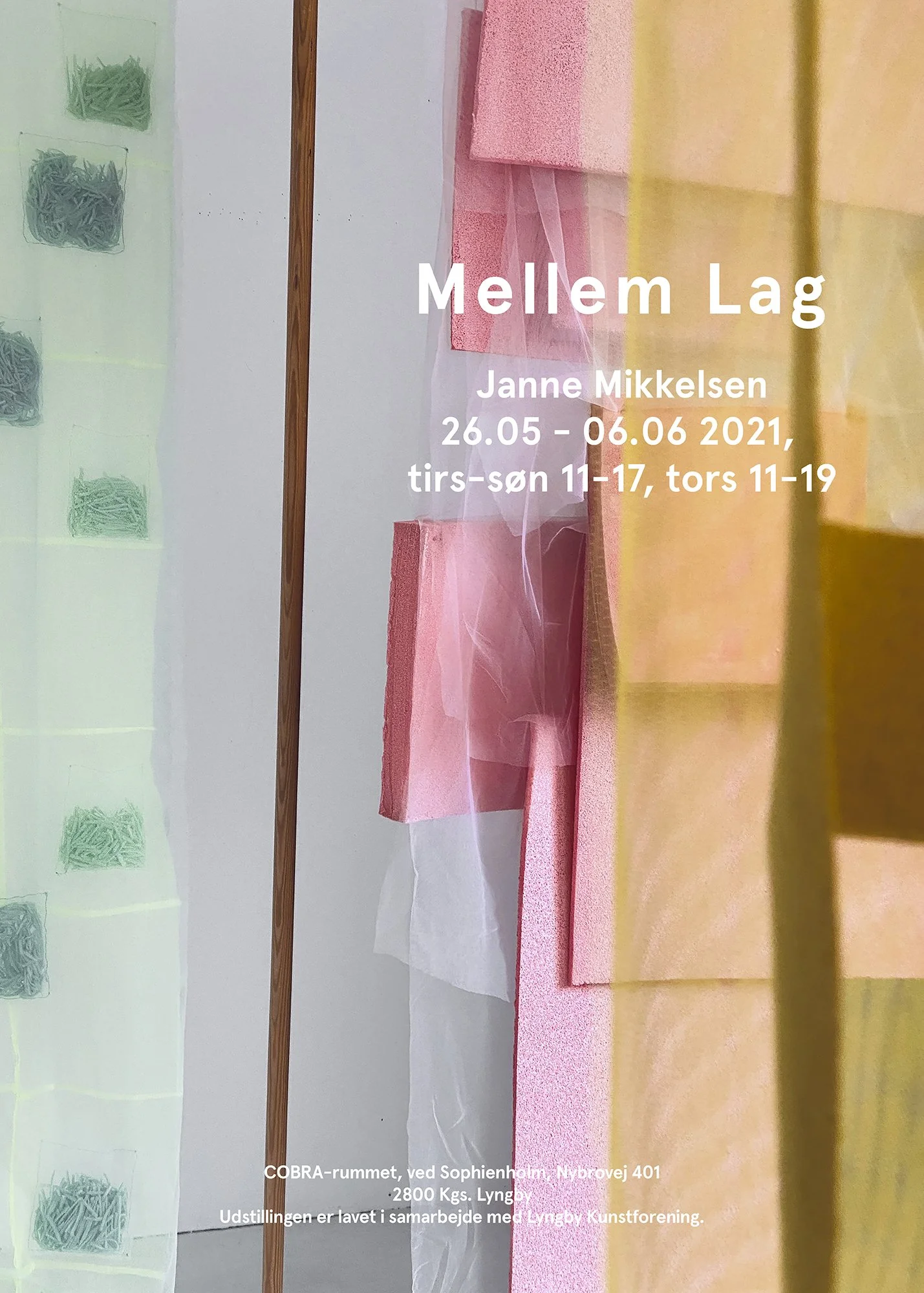 Solo exhibition Mellem lag/Between Layers, Cobrarummet ved Sophienholm, May 2021.